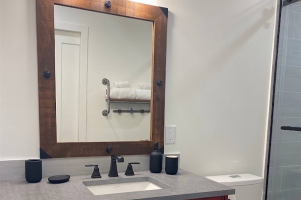 Attractive, well-appointed lower floor bathroom with roomy shower